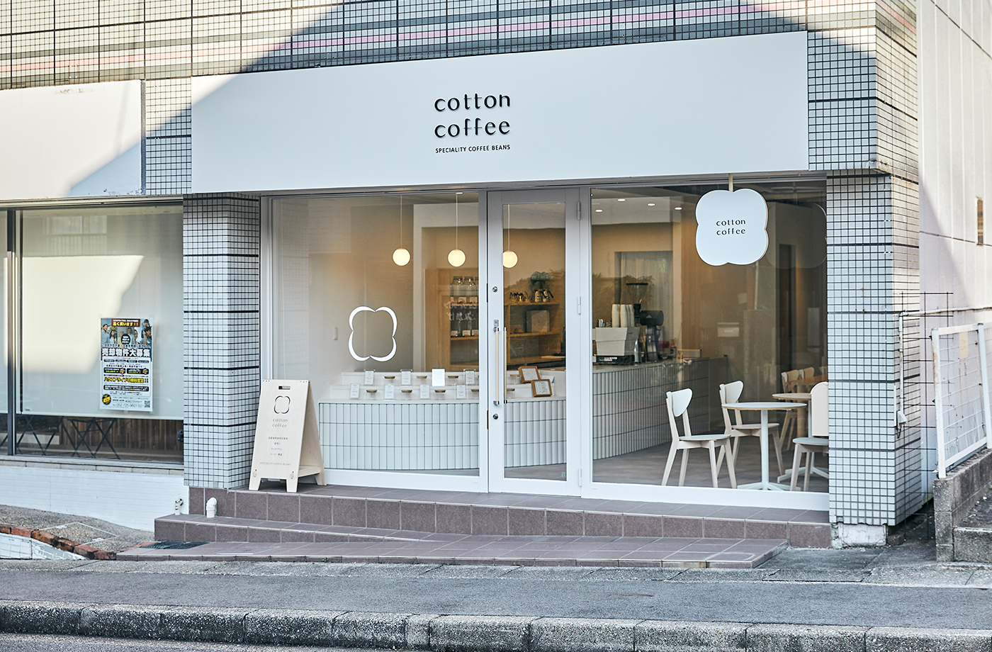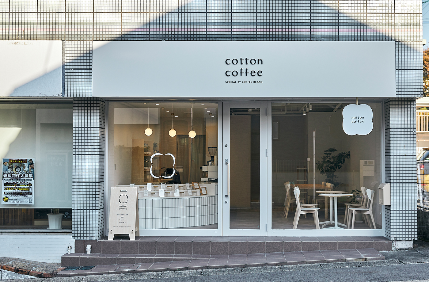 名東区にOPENした珈琲豆販売店「cotton coffee」さんのロゴから印刷物、内装デザイン一式を担当させていただきました。